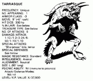 Jeg er kanskje ikke den eneste som mistenker at en eller annen fundamental feil ble begått da Tarrasquen ble puttet i monstermanualen. Dette blir tydeligere når man blir klar over at D&D’s utgave av Tarrasquen ikke er den første. Den lille byen Tarascon i Frankrike er oppkalt etter vesenet, som ifølge tidens reportere skal ha herjet landet en gang på 700-tallet.