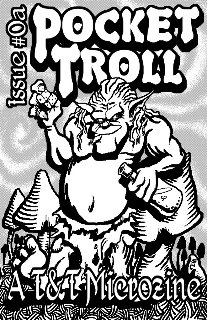 Det såkalte «Lommefanzinet», som handler eksklusivt om den ærverdige D&D-konkurrenten Tunnels & Trolls, kommer i ett av disse fancy innovative formatene som vi i Imagonem aldri ville finne på å forsøke oss på. (Vi har vitner på at limfresede a3-format fanzines er teh shitz i sørøst-kanada!); saken selges som pdf, og kommer med en ekstra fil i mikrozine-formatet som Steve Jackson Games forsøkte seg på med GURPS Ultra-Lite. Hele saken kan printes på ett ark, og brettes og snittes til et pyttelite magasin. Denne utgaven er nummerert som #0, en slags kickoffgreie – så om du liker å skrive T&T-materiale og er passabel i anglo, er det altså rom også for deg i #1.